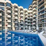 Dit Hotel Zenith Sunny Beach met 4 sterren, dat auto's te huur aanbiedt, is op 25 minuten wandelen vanaf het Action Waterpark. Dit hotel in de Sunny Beach Beachfront wijk van Sunny Beach biedt accommodatie met een seizoensgebonden buitenzwembad en een à-la-carterestaurant.